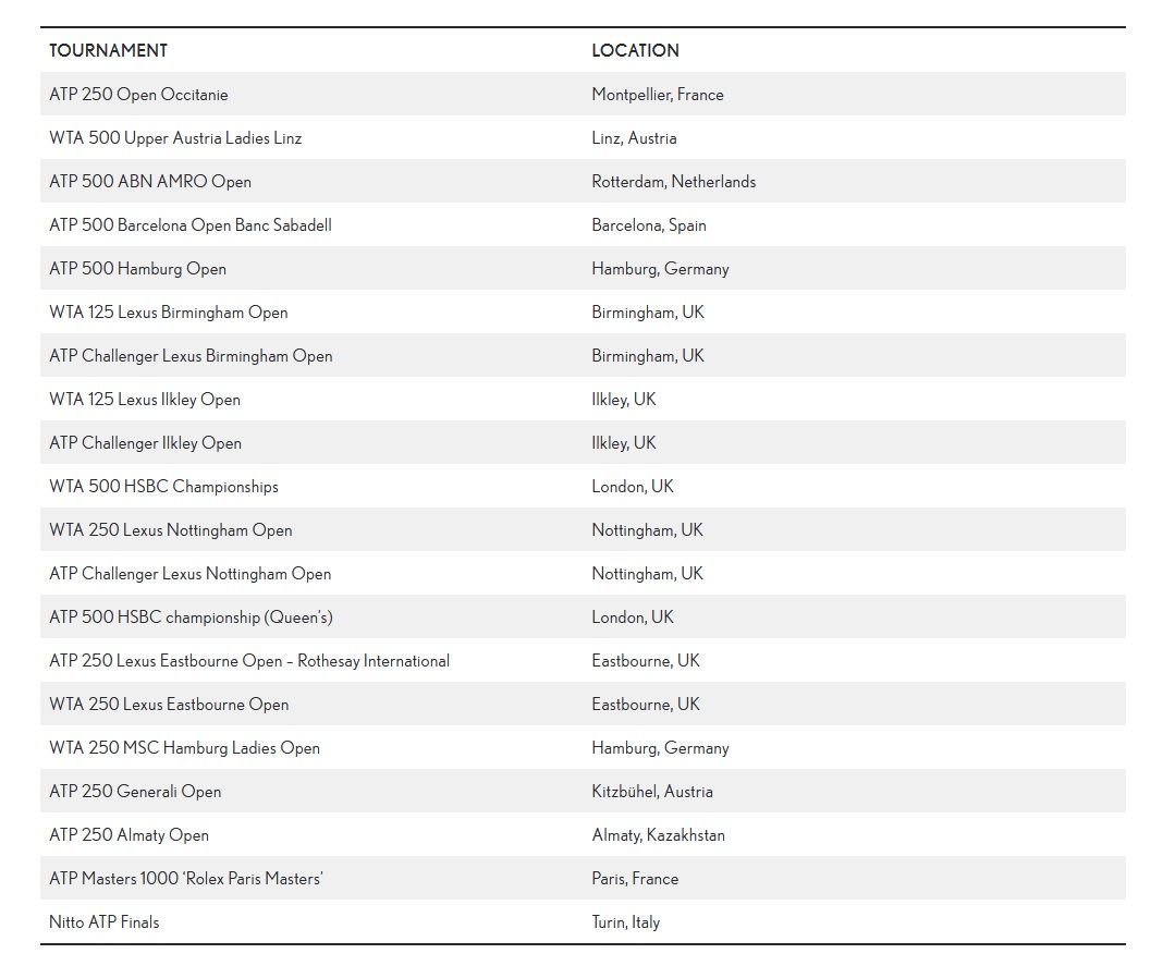 The partnership will deliver local Lexus sponsorship of ATP Tour tournaments in key locations throughout 2026, detailed below. Lexus will also continue to support several WTA and ATP Challenger Tour events through its partnership with the LTA.