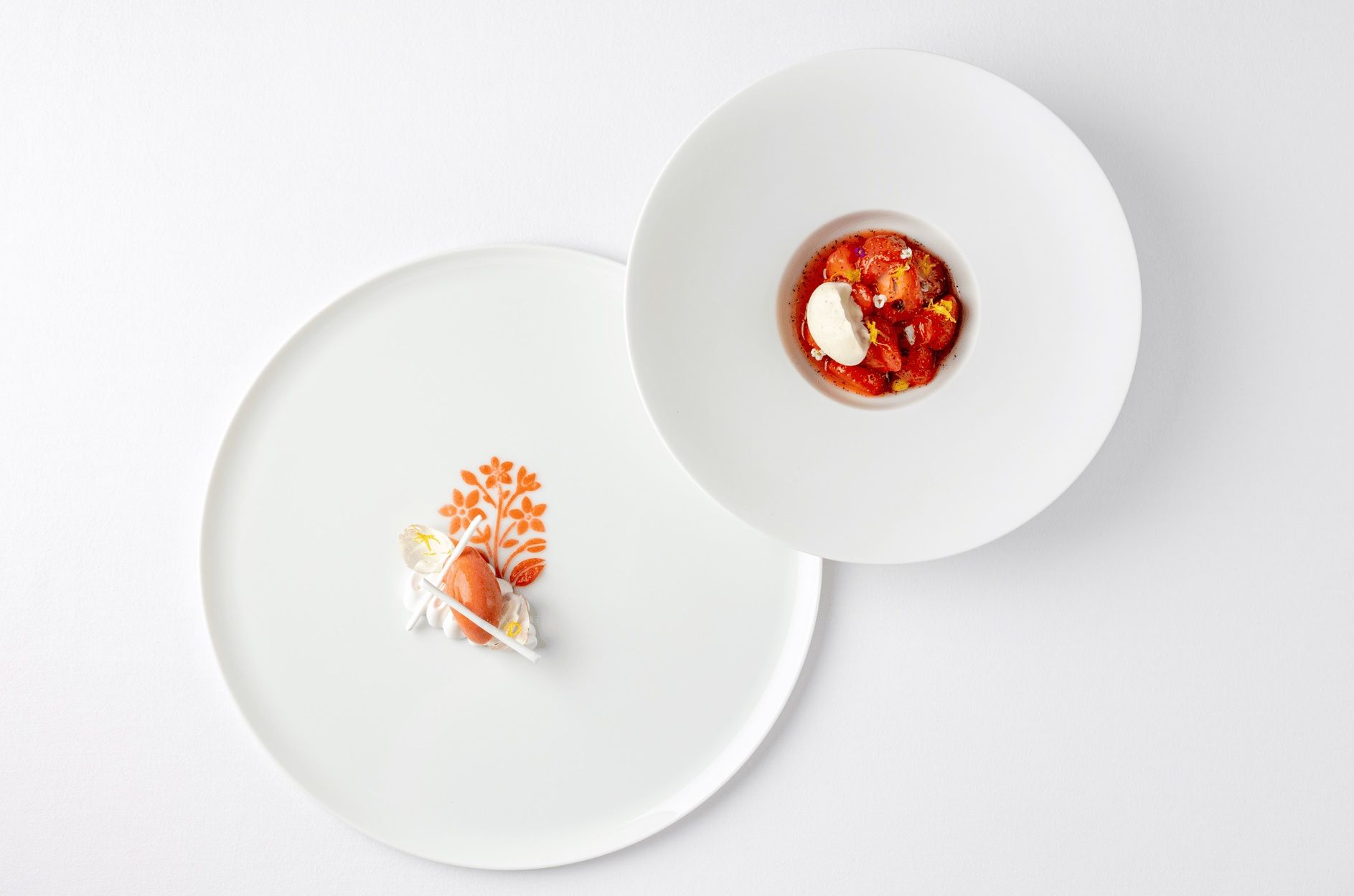 Fraise Gariguette – Gariguette strawberry with elderflower, French meringue and cheesecake "Chantilly", celebrating the finest French strawberries at their seasonal peak.