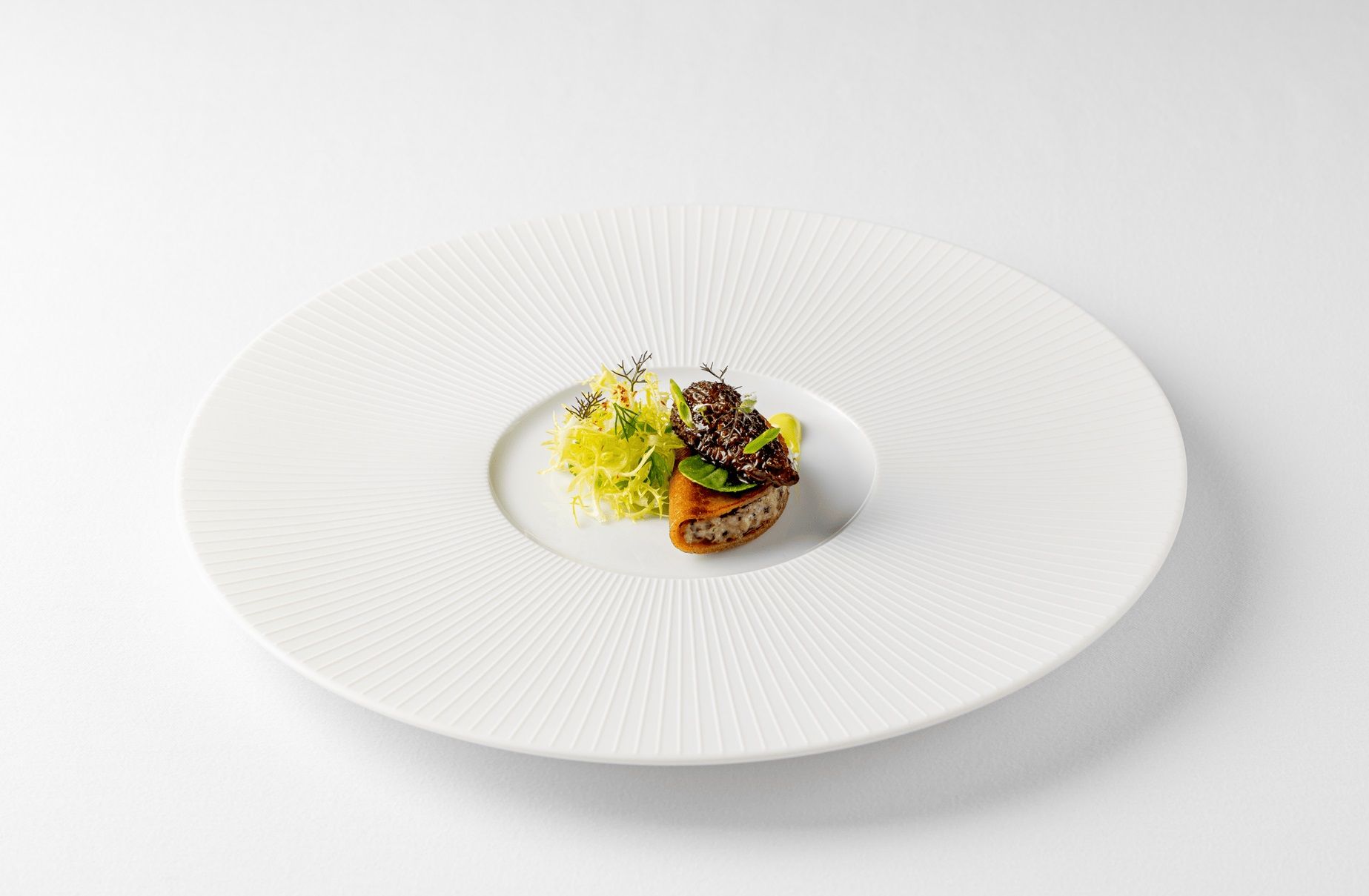 Galette Bretonne – A celebration of spring: Brittany galette with morel "farci", wild garlic and buckwheat, showcasing the delicate flavours of the season with classical French technique.