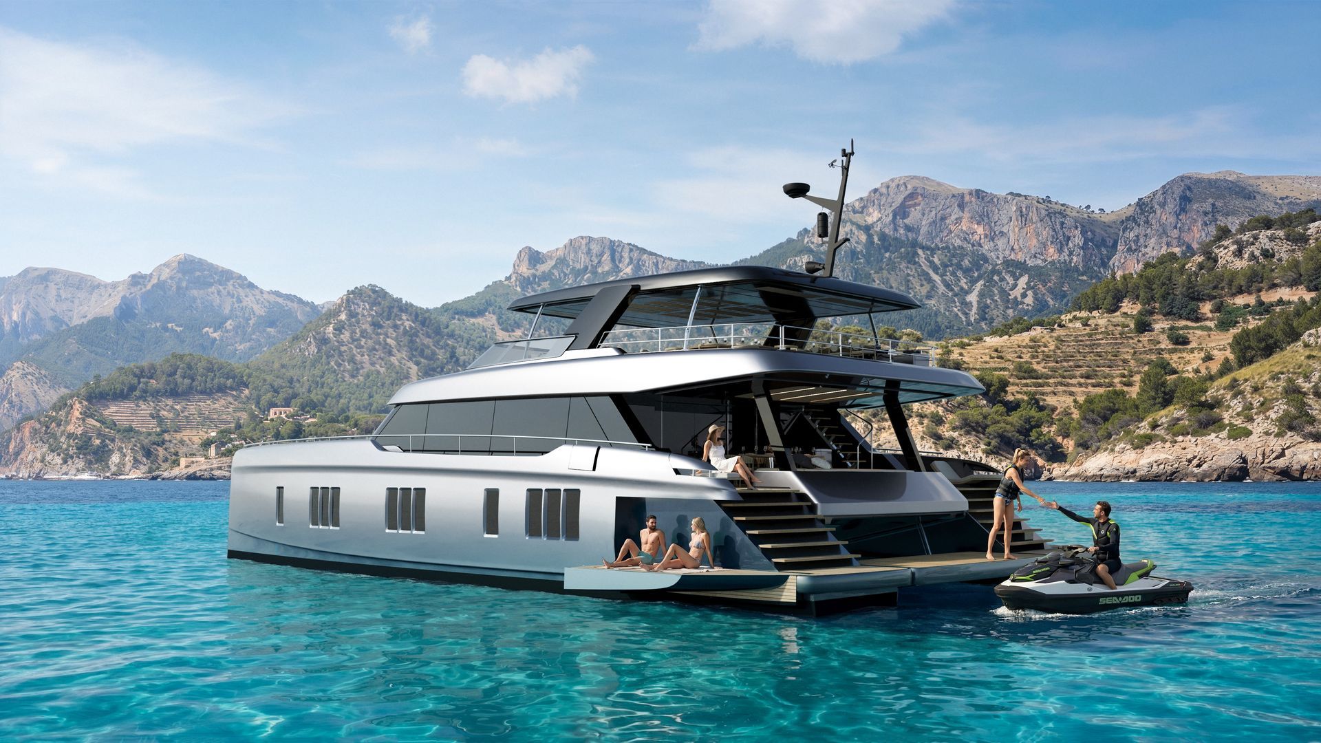 Robert Lewandowski’s 80 Sunreef Power NEXT will provide an unparallelled mix of space, style and innovation. His fully-customized 80-footer will boast a jet ski garage, an Ocean Lounge: a large walkaround beach club perfect for watersports and sunbathing, and ample alfresco lounging spaces, including a generous flybridge equipped for dining and relaxation.