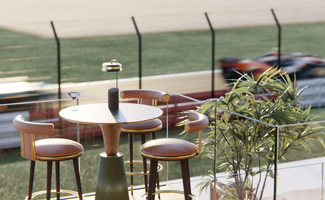 The architecture blends motorsport heritage with modern luxury and embodies British excellence in creativity and curation. Clean-lined interiors open onto expansive terraces with uninterrupted sightlines across the Grand Prix circuit. Materials are restrained, the layout intentional. Guests move fluidly between trackside vantage points, dining spaces and private suites designed for discretion rather than display.