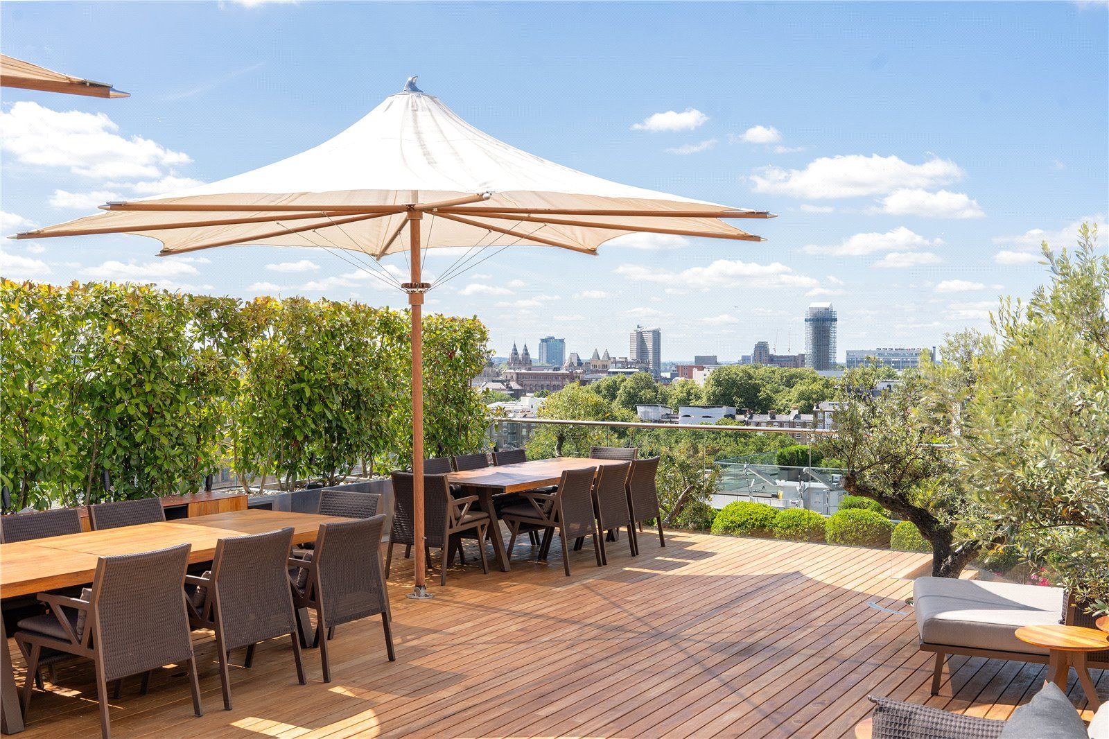 The sense of exclusivity extends outdoors to the penthouse’s private terrace – a space that stands among the finest in central London. Here, high above the streets of Knightsbridge, a private swimming pool takes centre stage, an exceedingly rare feature for any property in the capital. This elevated oasis invites sun-soaked afternoons, twilight swims and spectacular evenings spent entertaining against the glow of London’s endless panorama. It is a setting that rivals the terraces of Manhattan, Dubai or Hong Kong, yet firmly rooted in the timeless sophistication of SW7.